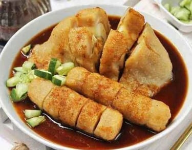 Dibuat dengan ikan tenggiri segar diolah menjadi jenis Pempek kapal selam, kulit, lenjer disiram dengan kuah cuka segar pempek khas Palembang.